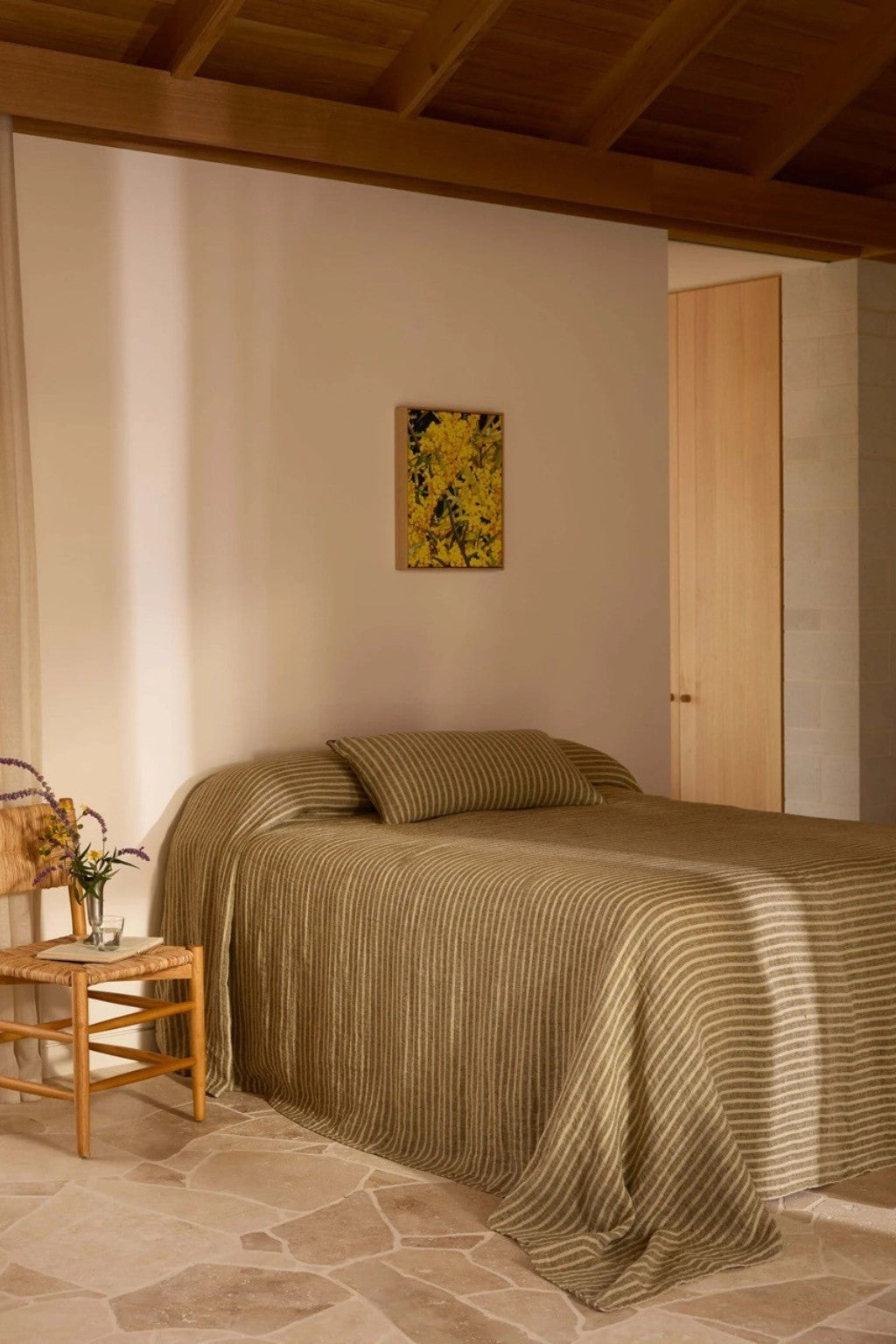 Handloomed using supreme heavy-weight 380gsm European linen the Ava bedcover features a modern stripe design while maintaining a classic subtle crinkled texture. Finished with a simple hem detail, the beauty of the luxuriously refined texture can be treasured. A lightweight layer, it is perfect for dressing the bed with a flat sheet in place of a duvet on warmer nights.