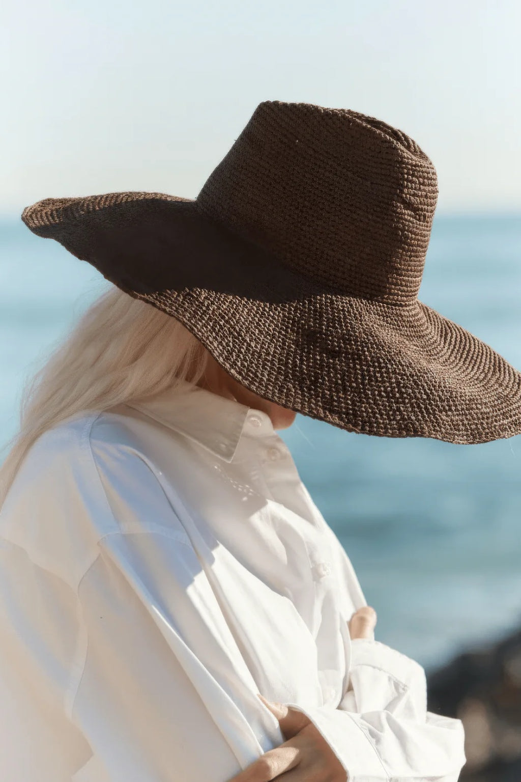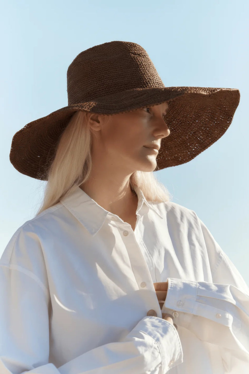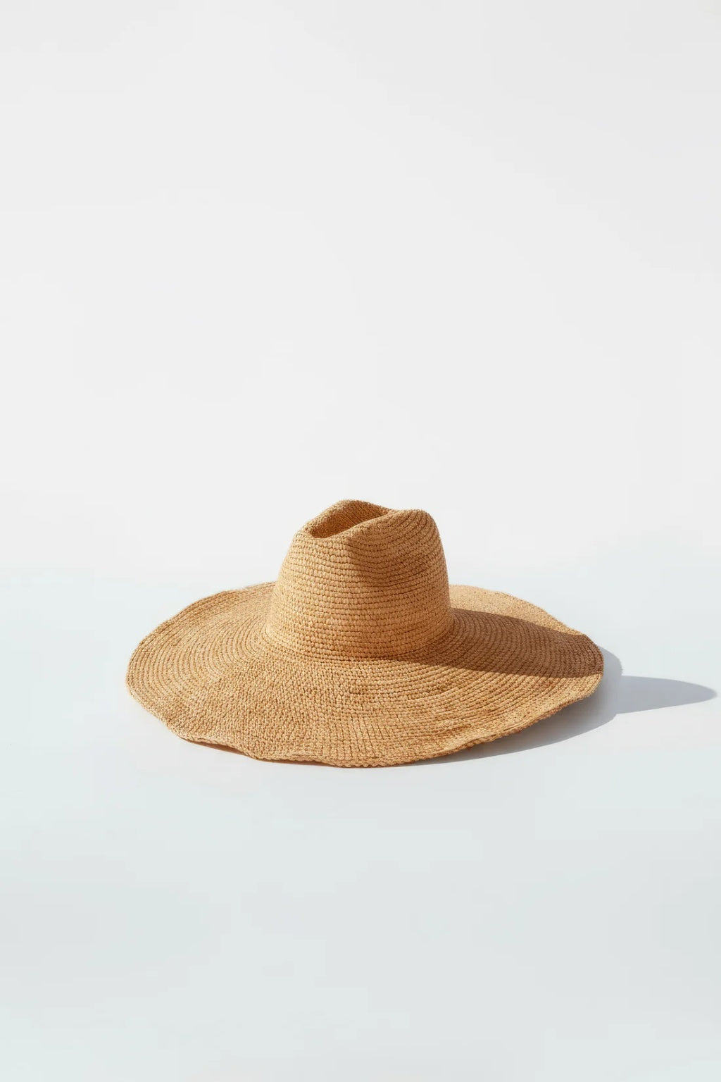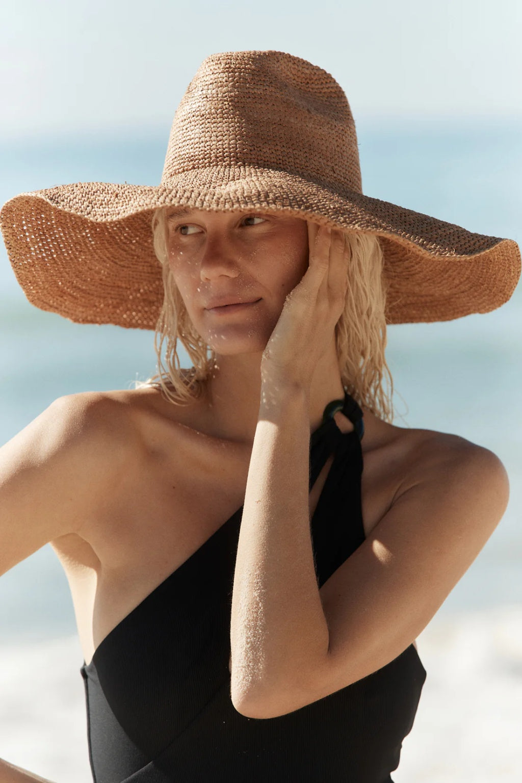 The Ombra Sun Hat was designed for modern ease. A flexible brim invites sculptural styling and simple travel. Structured raffia lends form and comfort in equal measure. Handwoven in Madagascar using traditional techniques.